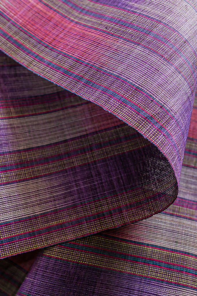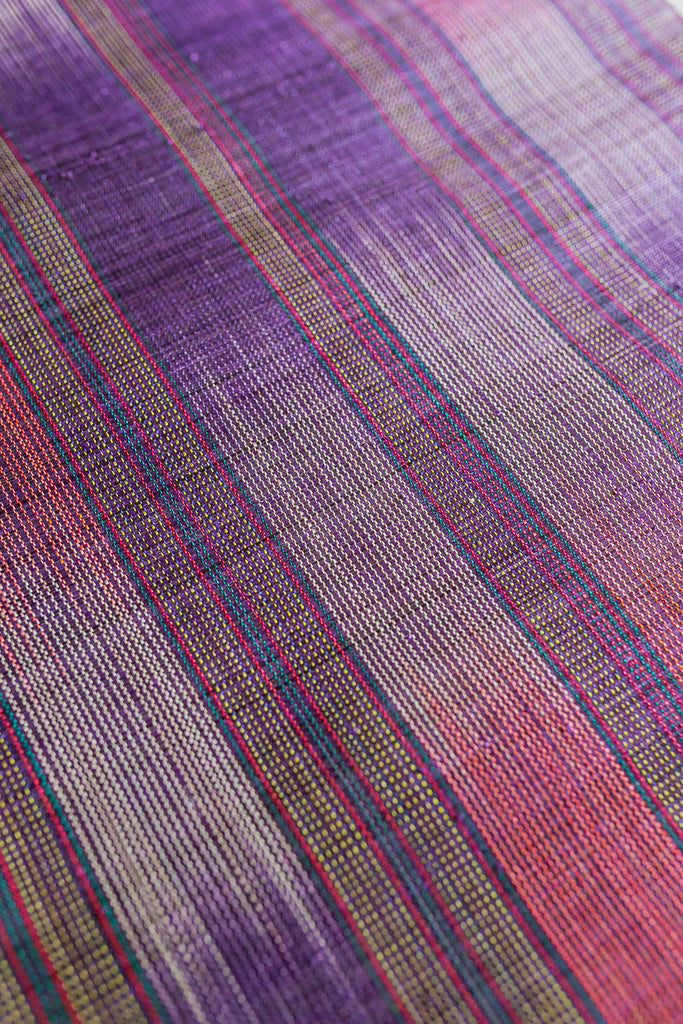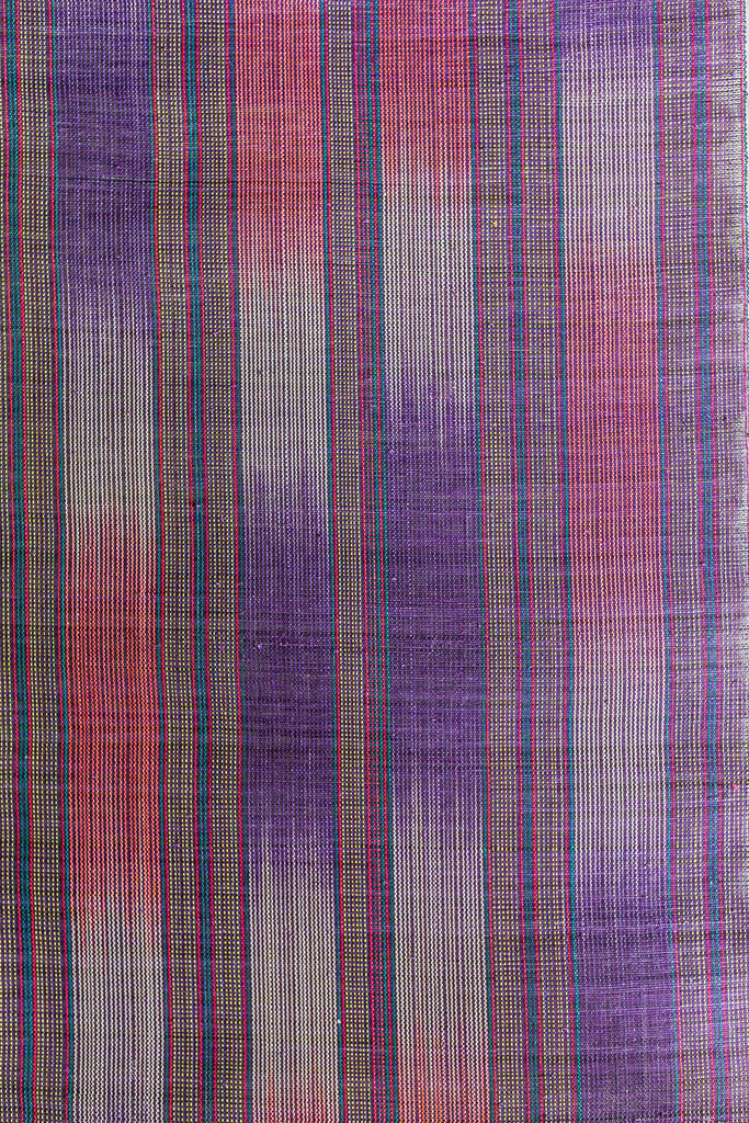 The Abaca Pinangabol is a traditional weave of the Daraghuyan Bukidnon Community, one of the seven tribes of Bukindon. Traditionally used for protective clothing, the Abaca Pinangabol is woven in a vertical loom using abaca fiber that is abundant in their forest. The community uses a combination of both natural and commercial dyes to achieve a variety of vibrant colours. Pinangabol weaves carry with them generations of tradition and spirituality, as women of the Daraghuyan Tribe perform a ritual before beginning their day's work on the loom.