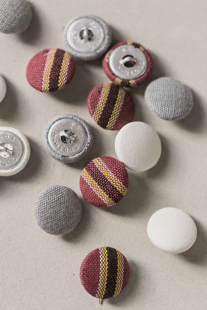 These buttons do not lay flat against the garment but rather raised slightly above. These cloth-covered buttons utilize your imagination and creativity. A great option as a decorative finish for an outfit.