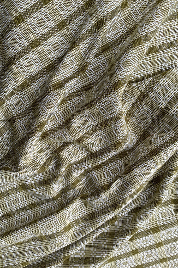 The Binakol fabric is indigenous to the Ilokanos and Itneg communities of Ilocos and the Cordillera region. It is woven in two colours forming geometric patterns of squares and rectangles giving an optical illusion that is said to create a dizzying effect to drive away bad spirits. The Binkaol is woven just by counting in the weavers' minds without a manual or guide. Traditionally, the Binakol is a ceremonial cloth used for protection.
