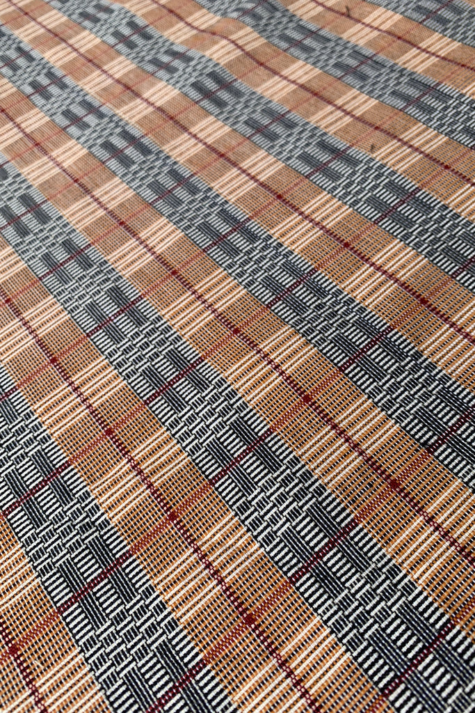 The Binakol fabric is indigenous to the Ilokanos and Itneg communities of Ilocos and the Cordillera region. It is woven in two colours forming geometric patterns of squares and rectangles giving an optical illusion that is said to create a dizzying effect to drive away bad spirits. The Binkaol is woven just by counting in the weavers' minds without a manual or guide. Traditionally, the Binakol is a ceremonial cloth used for protection.