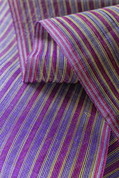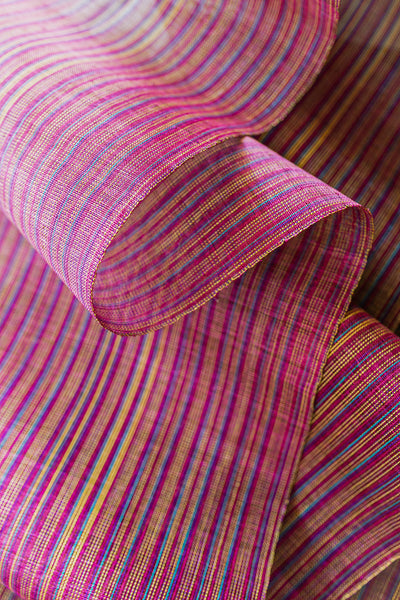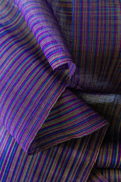The Daraghuyan Bukdinon Community is one of the seven tribes of the Bukidnon Tribe. Daraghuyan means “people of the mountain,” derived from one of the mountains that comprise the Kitanglad Range where the tribe resides. Weaving is seen as sacred gift for the community that is bestowed among the tribal women only. The ikat patterns and colour inspiration appear in the form of dreams. The community performs a thanksgiving ritual before and after the weaving as part of its process. Daraghuyan only weaves using natural fibers called abaca and natural dyes from indigenous plants with some combination of commercial dyes to archive an array of vibrant hues.