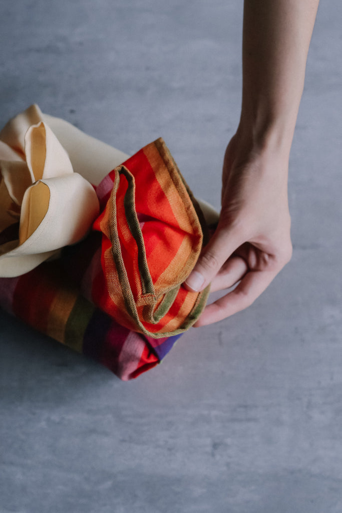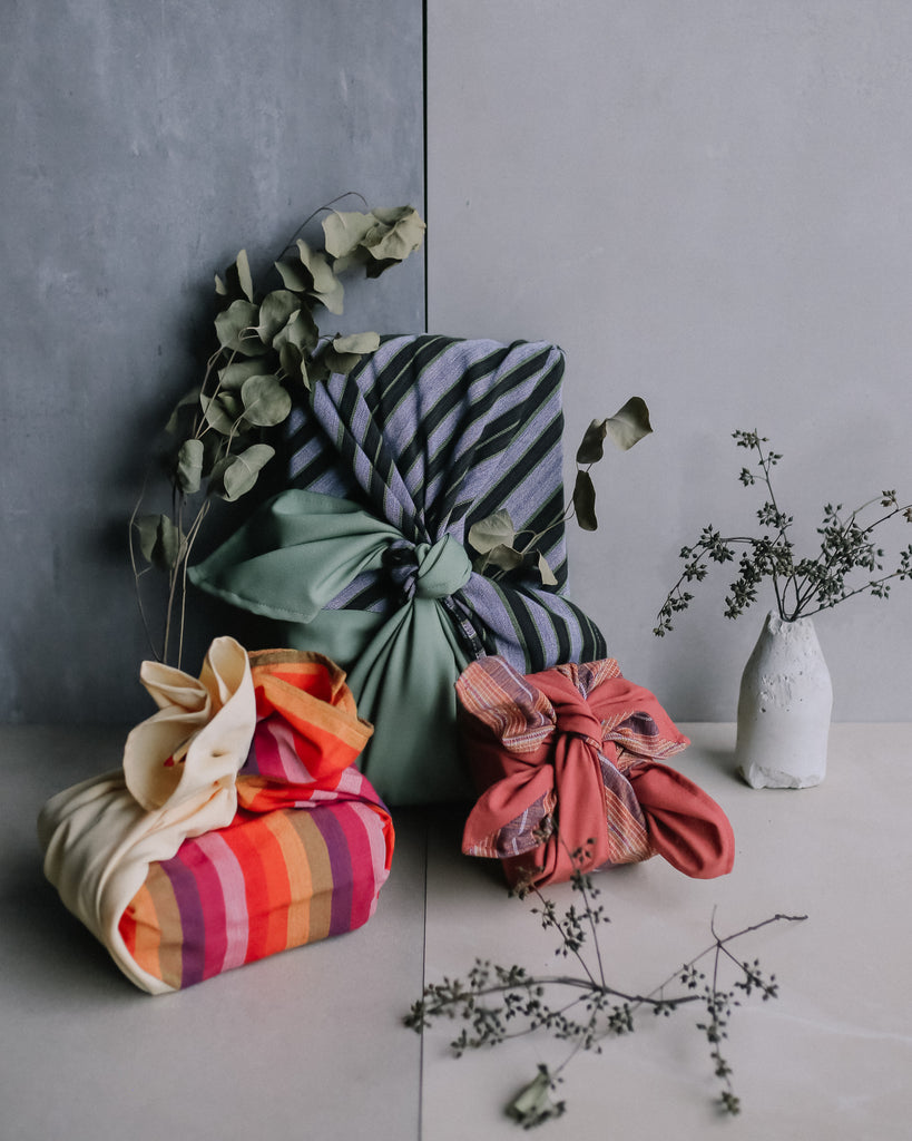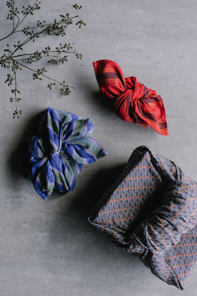 Inspired by the traditional Japanese wrapping cloth Furoshiki used to wrap and transport goods, we use our handwoven fabrics to transform the art of gift-giving. Our weave wraps are available in five sizes that can be used to wrap items of different sizes and shapes. Get creative with these fabrics wraps and reuse them as a bandana, headscarf, or table napkin. Discover a different way of wrapping with knots and tying up without the hassle of cutting and taping!